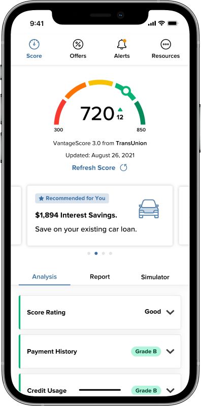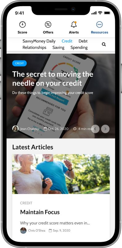 A: SavvyMoney Credit Score can help you manage your credit so when it comes time to borrow for a big-ticket purchase—like buying a home, car or paying for college—you have a clear picture of your credit health and can qualify for the lowest possible interest rate. You'll also see offers on how you can save money on your new and existing loans with ABC financial institution.